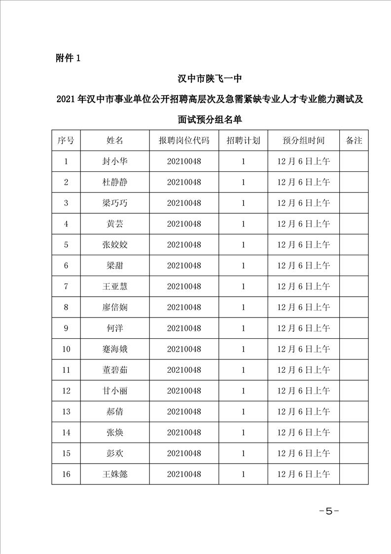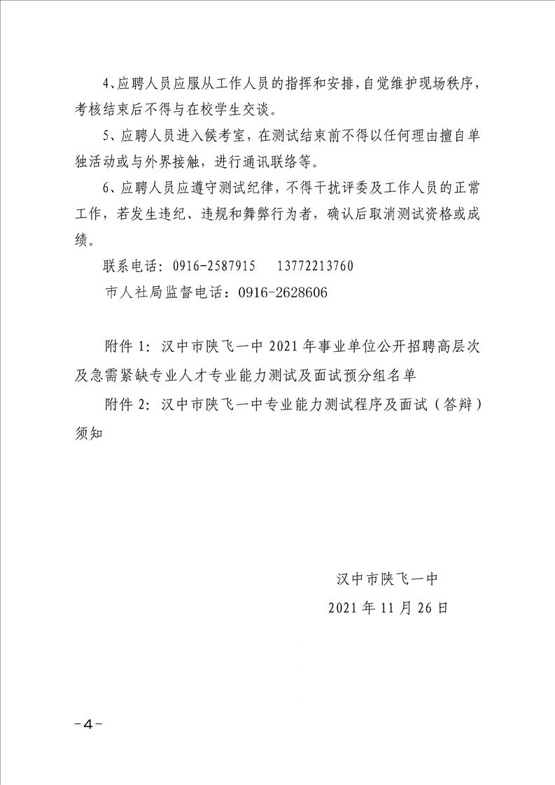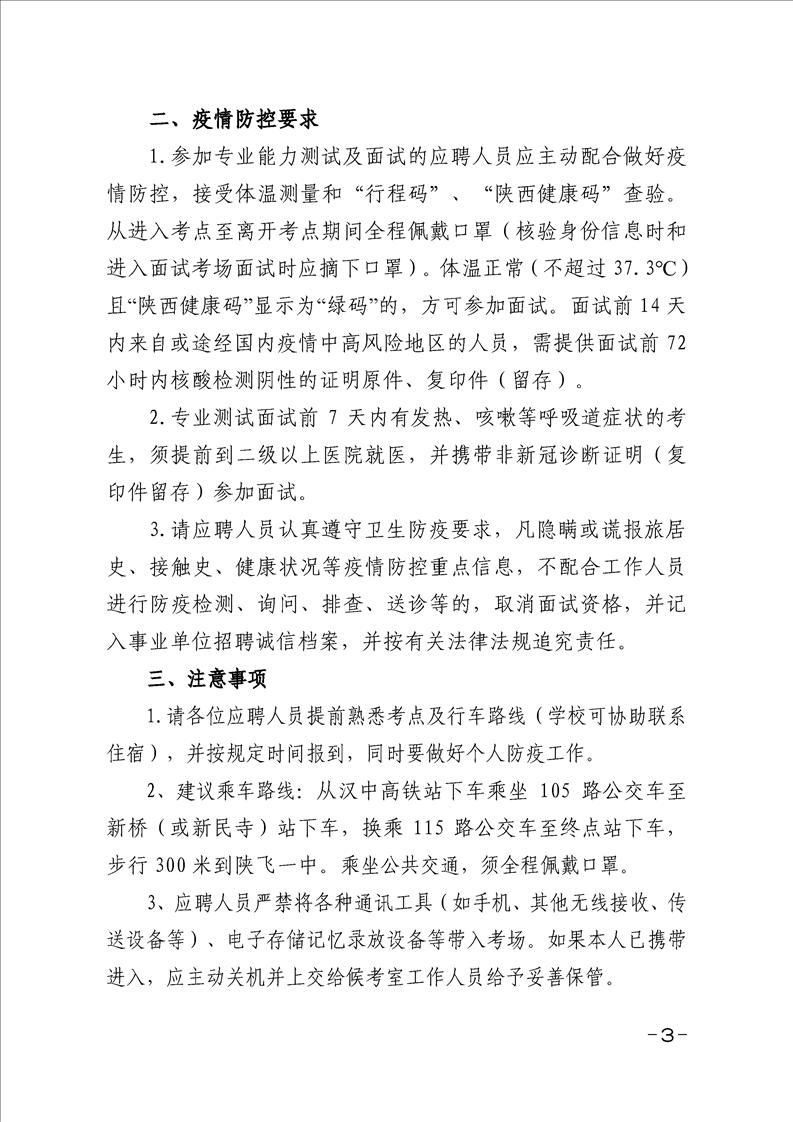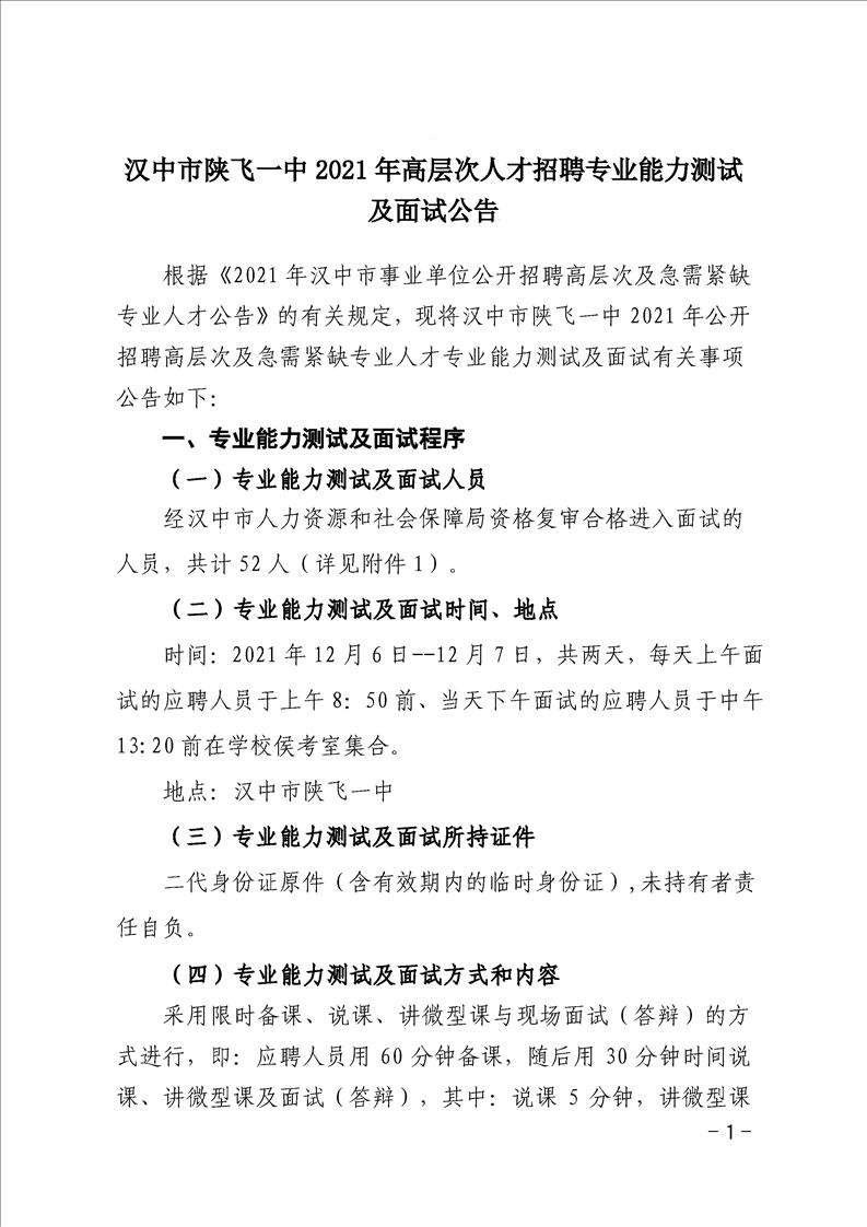 汉中市陕飞一中2021年高层次人才招聘专业能力测试及面试公告