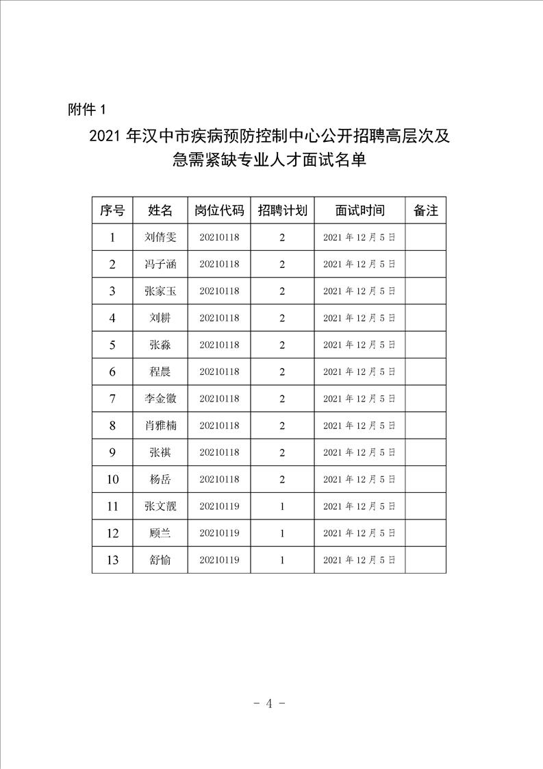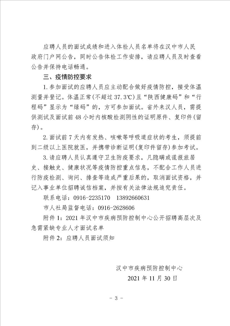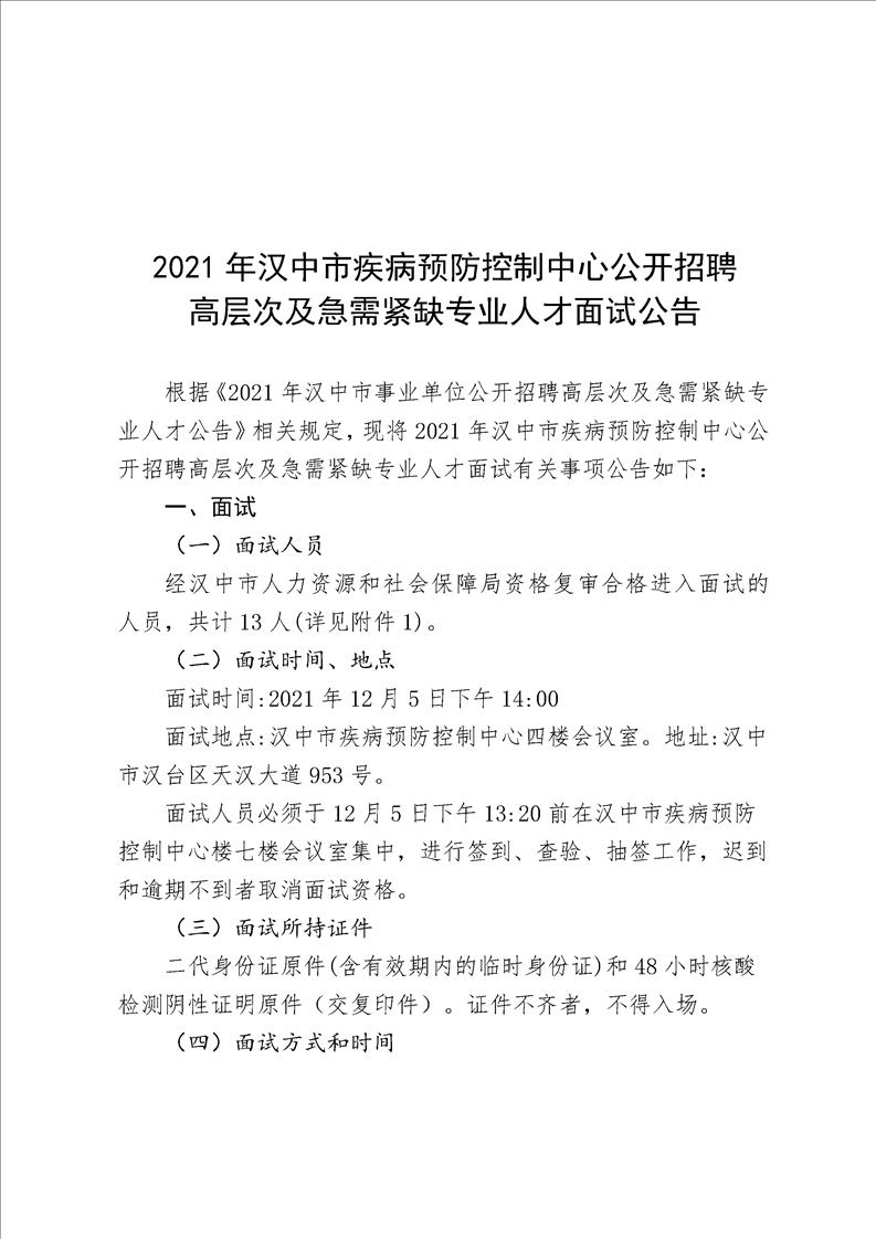 2021年汉中市疾病预防控制中心公开招聘高层次及急需紧缺专业人才面试公告