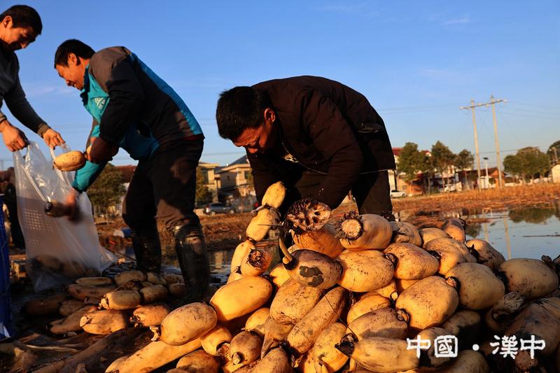 梁山镇荣国村的藕田里,挖藕人身着防水服,在泥沼中精准采挖,一根根肥硕的莲藕破泥而出,日销数千斤。莲藕种植是荣国村的传统优势产业,通过土地流转、基地务工等方式,村民实现了“租金+薪金”的双重增收。