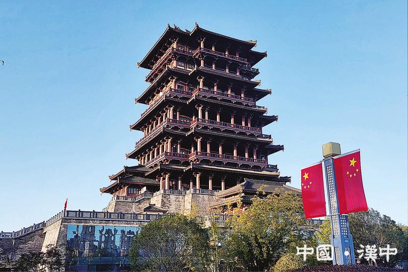 鲜艳的五星红旗与天汉楼交相辉映。 记者刘俊强摄