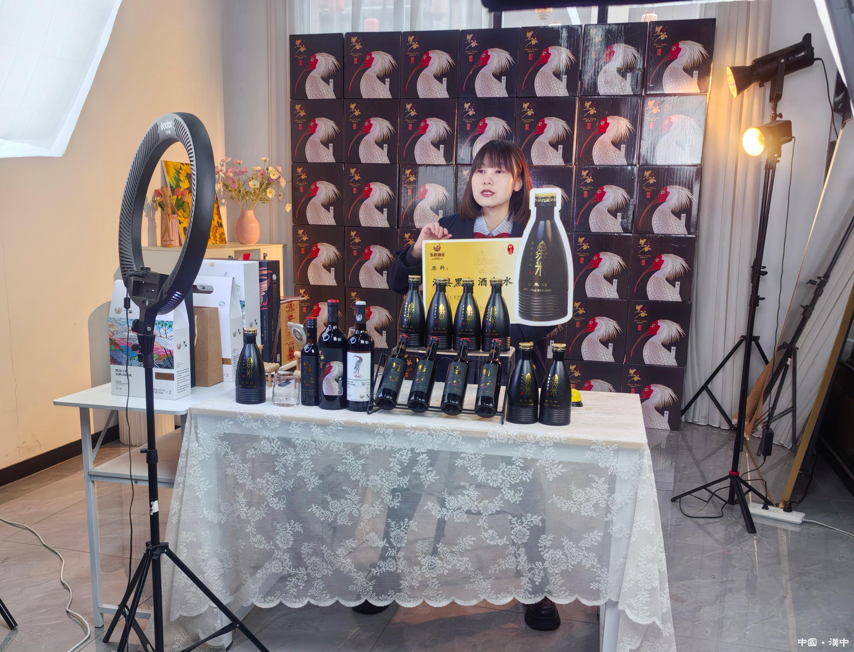 主播岳一婷直播带货洋县黑米酒。