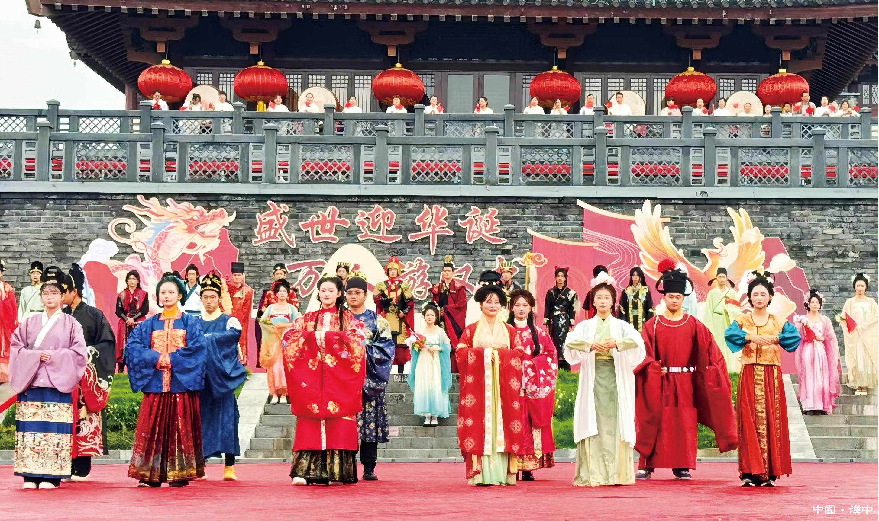 今年国庆期间,我市推出“穿着汉服游汉中”等83项特色活动,吸引超20万游客参与。图为2025“盛世迎华诞·万人游汉中”汉服嘉年华活动在天汉楼广场盛大启幕。