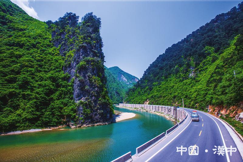210国道西乡段堰口镇沿河干线公路风景如画。