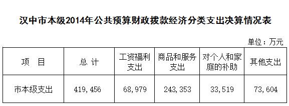 汉中市本级2014年公共预算财政拨款经济分类支出决算情况表