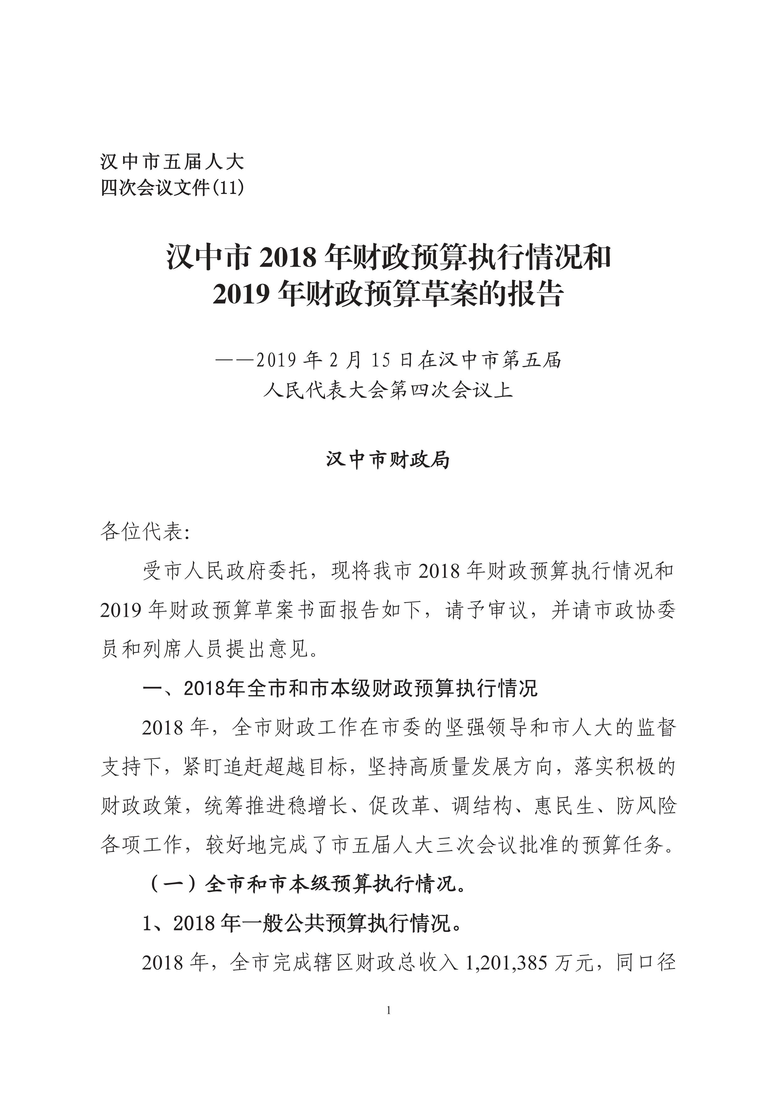 附件:汉中市2018年财政预算执行情况和2019年财政预算(草案)附表.pdf
