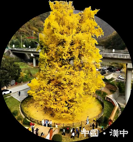 留坝县玉皇庙镇千年银杏树下,游人如织。