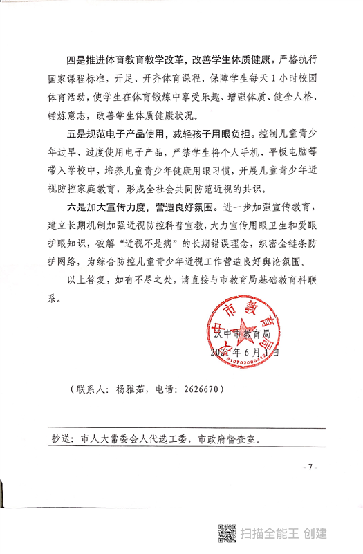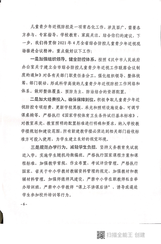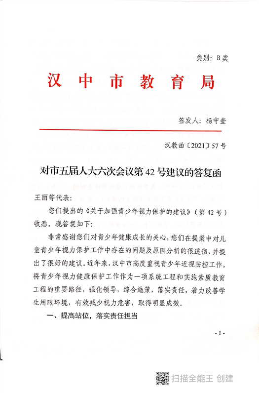 汉中市教育局关于对市五届人大六次会议第42号建议的答复函