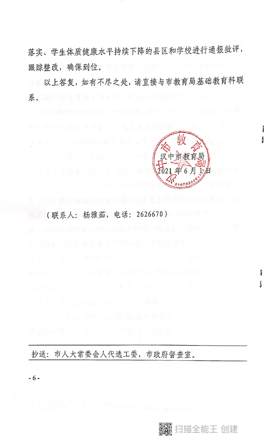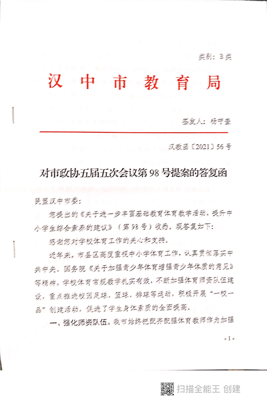 汉中市教育局关于对市政协五届五次会议第98号提案的答复函