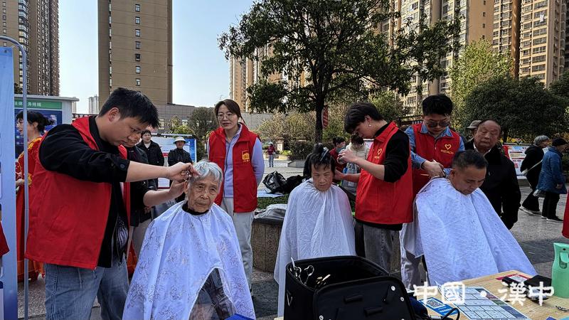 在明珠苑社区,志愿者们为居民提供免费理发服务,用行动传递温暖与关爱。