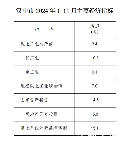 汉中市2024年1-11月主要经济指标