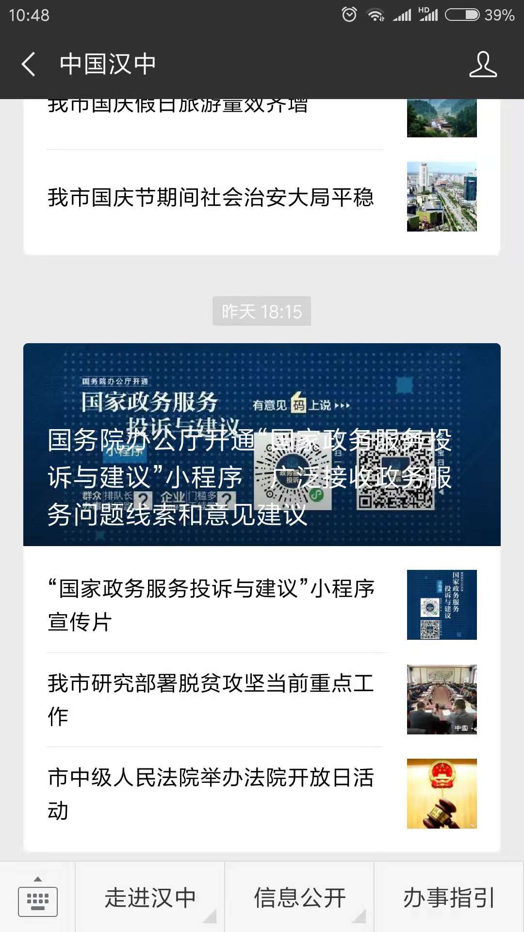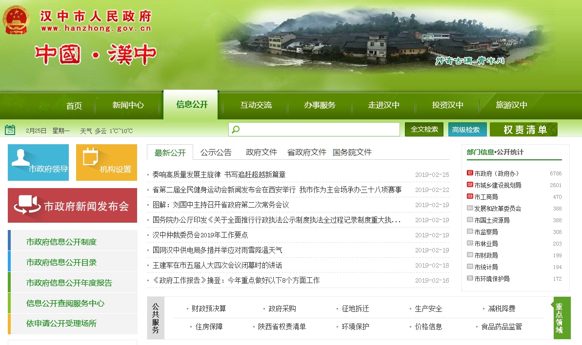 一是强化政府网站建设管理。以全国政府网站普查为抓手,积极推进集约化建设,抓好常态化抽查,强化安全保障机制。建设了共有64个子站的网站群,建立了网站内容月度监测和季度抽查制度,推行不合格网站退出机制,初步形成了内容保障常态化机制,确保政府网站发挥政务公开和政务服务第一平台作用。二是用好“两微一端”新平台。以“两微一端”推动政府信息全媒体公开,加强对政务新媒体的日常监管和维护。开设市级政务新媒体3个,市直部门政务新媒体62个,区县级及以下各级政务新媒体436个,年均发布信息3万条;印发《关于开展政务新媒体基本情况调查摸底工作的通知》,根据调查情况对维护能力差、关注用户少的政务新媒体通知关停。同时,积极拓展传统信息公开渠道,全市信息公开查阅点达435个,年查阅量1.5万人次。每年通过传统的政务公开栏、报纸、广播、电视等方式公开4.5万条信息。三是推动政府服务热线惠民生。加强热线整合、管理培训和绩效考核,与110、120、119等紧急救助热线实现分流对接,完成市食药监举报投诉热线12331和市城建服务热线12319整合,建立包含全市30余条热线电话呼转目录,实现一键转接、三方通话功能,进一步提升便民服务效率;印发《汉中市12345政府服务热线管理办法》和《汉中市“市长信箱”和“12345政府服务热线”来件办理工作考核实施细则》,推动热线管理规范和质效提升。全年共接到群众来电32475个,形成工单31363个,话务员通过查询知识库直接回复群众22944个工单,转承办单位8419个工单,回访群众满意率达90%。四是积极探索创办政府公报。印发《汉中市人民政府公报创刊工作方案》,健全组织机构,完善发布制度,确定发放范围。确定由市政府办公室汉中市政府公报主办,市政府秘书长主编,分管副秘书长为副主编,市政府内设机构负责人为编委会成员,市信息办负责同志为责任编辑,编辑部设在市信息办,实行免费赠阅的发行方式,免费赠阅范围应覆盖本地区党政机关、法院、检察院、档案馆、公共图书馆、政务服务大厅以及街道办事处、社区、村(居)委会等,目前已刊发政府公报1期。