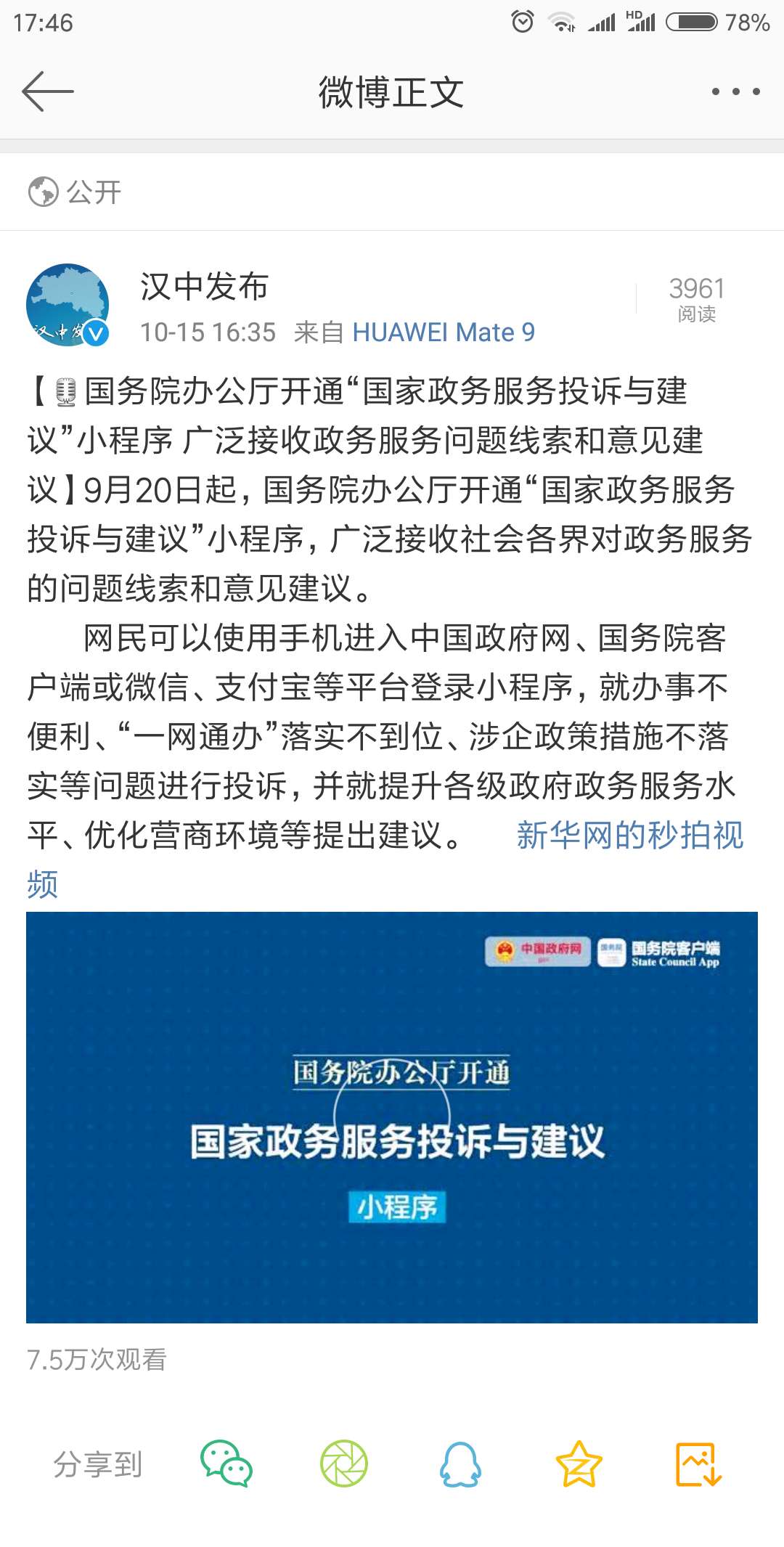 3、新媒体。全市通过政务微博发布各类信息9133条,通过政务微信发布各类信息9176条。