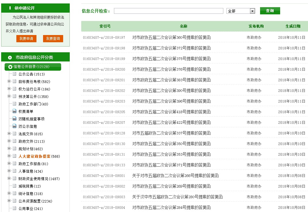 2018年,我市全面公开市县人大代表建议和政协委员提案办理结果,人大代表建议办理方面发布相关信息509条、其中市级100条,政协委员提案办理方面发布相关信息559条、其中市级111条。