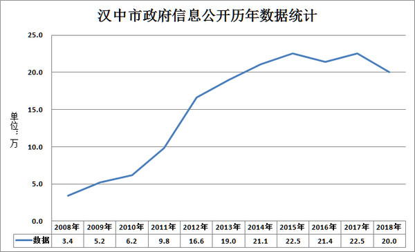 根据《中华人民共和国政府信息公开条例》(以下简称《条例》)的规定和《汉中市政府信息公开规定》(以下简称《规定》)的要求,现公布《汉中市人民政府2018年政府信息公开年度报告》。本报告由概述、政务公开工作要点落实情况、人大代表建议政协委员提案办理结果公开情况、主动公开政府信息情况、依申请公开政府信息办理情况、政府信息公开的收费及减免情况、政府信息公开类行政复议和行政诉讼情况、政府信息公开工作存在的主要问题及改进措施、附表九部分组成。
