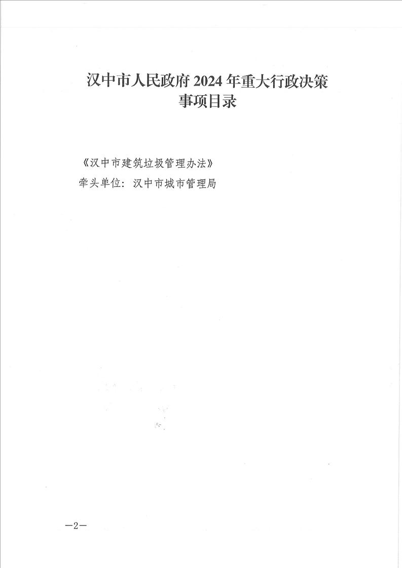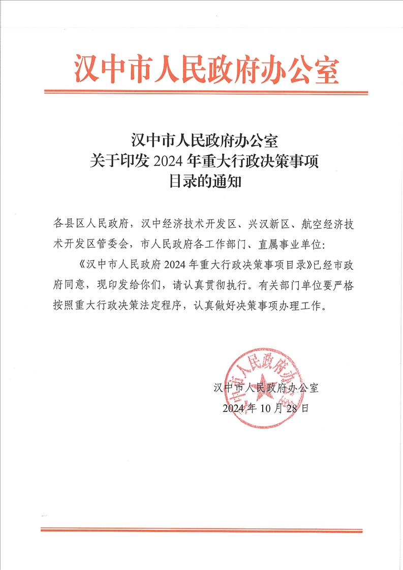 汉中市人民政府办公室关于印发 2024年重大行政决策事项目录的通知