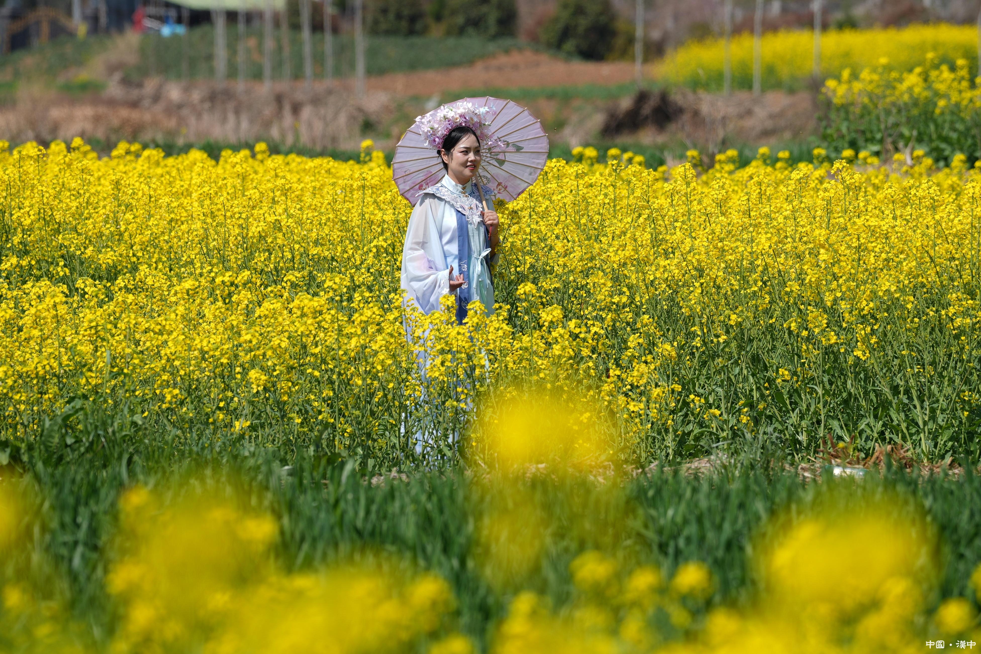 在汉台、洋县、勉县等地,盛开的油菜花和美人梅吸引众多摄影爱好者和市民前来打卡。身着汉服的女子撑伞穿行于油菜花海之中,宛如画中人;游客漫步美人梅林,沉醉于春日的诗意;更有摄影者专注捕捉光影交错之美,记录下春天最动人的表情。