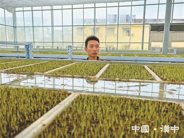 “我们有智能温室,温度、湿度都能精准调控,秧苗长得又齐又壮。”该合作社技术总监来明波一边检查秧苗覆水情况,一边笑着说。