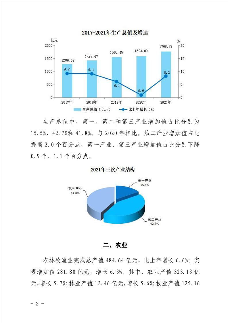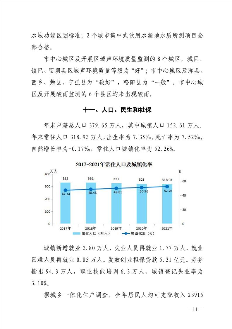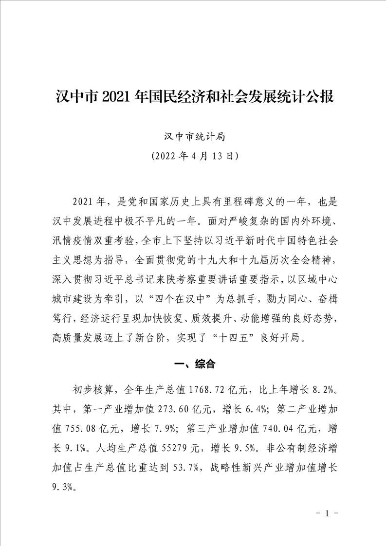 汉中市2021年国民经济和社会发展统计公报