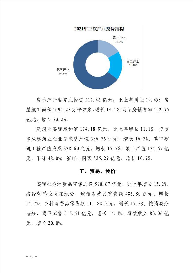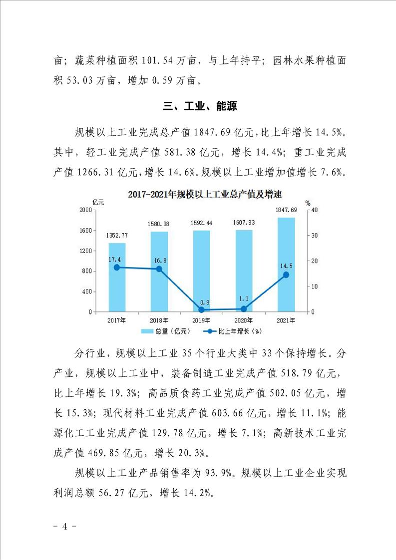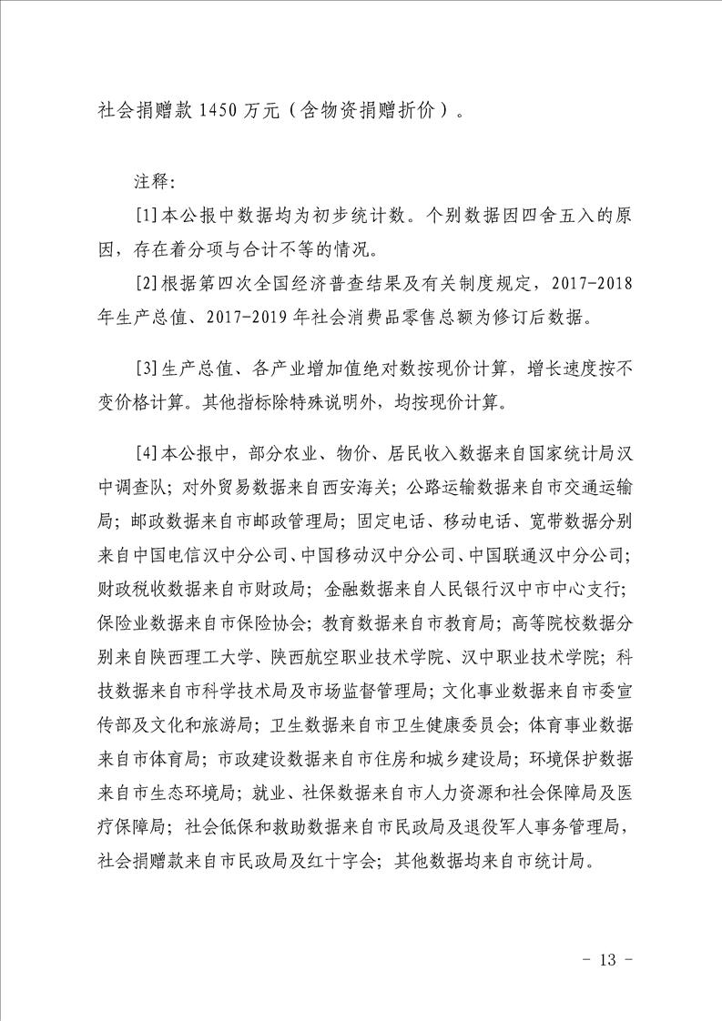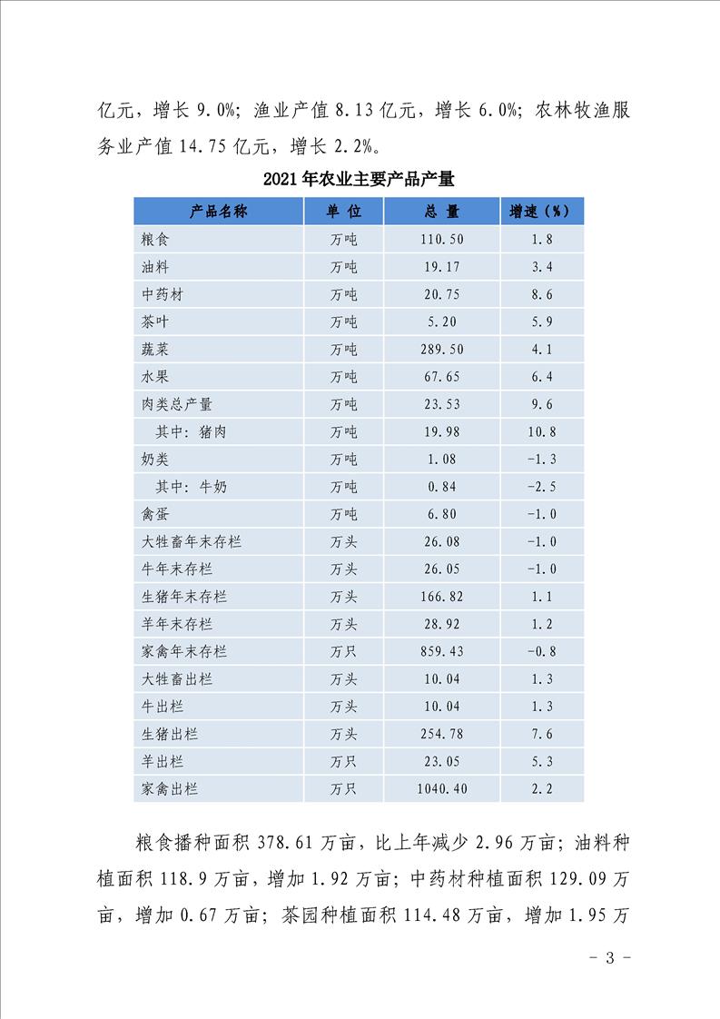 汉中市2021年国民经济和社会发展统计公报