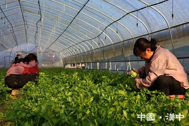 村民在百顺盛旺蔬菜种植基地采收芹菜。