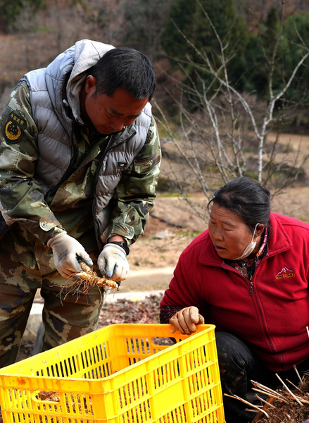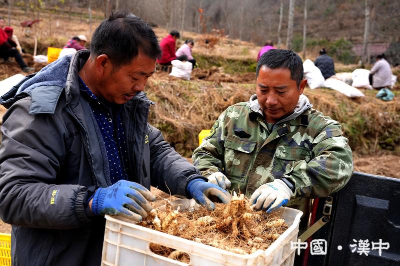 隆冬时节,留坝县马道镇龚家院村的田间地头却一派热火朝天的繁忙景象。10余名村民正在进行玉竹采挖工作,分拣、挑拣、选种,指尖翻飞间,带着芽孢的优质种源和商品玉竹被区分开来,在冬日暖阳下泛着温润的光泽。